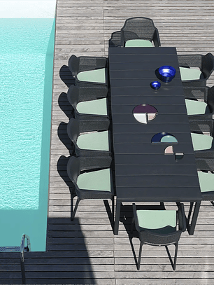 Entre sus características destacan su robustez, resistencia al sol y la lluvia, así como su facilidad de limpieza, lo que la convierte en una opción práctica para quienes buscan mejorar su espacio exterior. La Mesa Net 100 no solo es funcional, sino que también aporta un toque de clase a cualquier ambiente al aire libre.