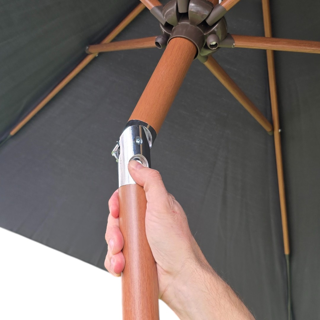 Funcionalidad y Confort El parasol Portugal D2.7 es increíblemente fácil de usar. Su sistema de manivela te permite abrir y cerrar la lona sin esfuerzo. Además, cuenta con un práctico botón para inclinarlo 45°, permitiéndote bloquear los rayos del sol a cualquier hora del día.